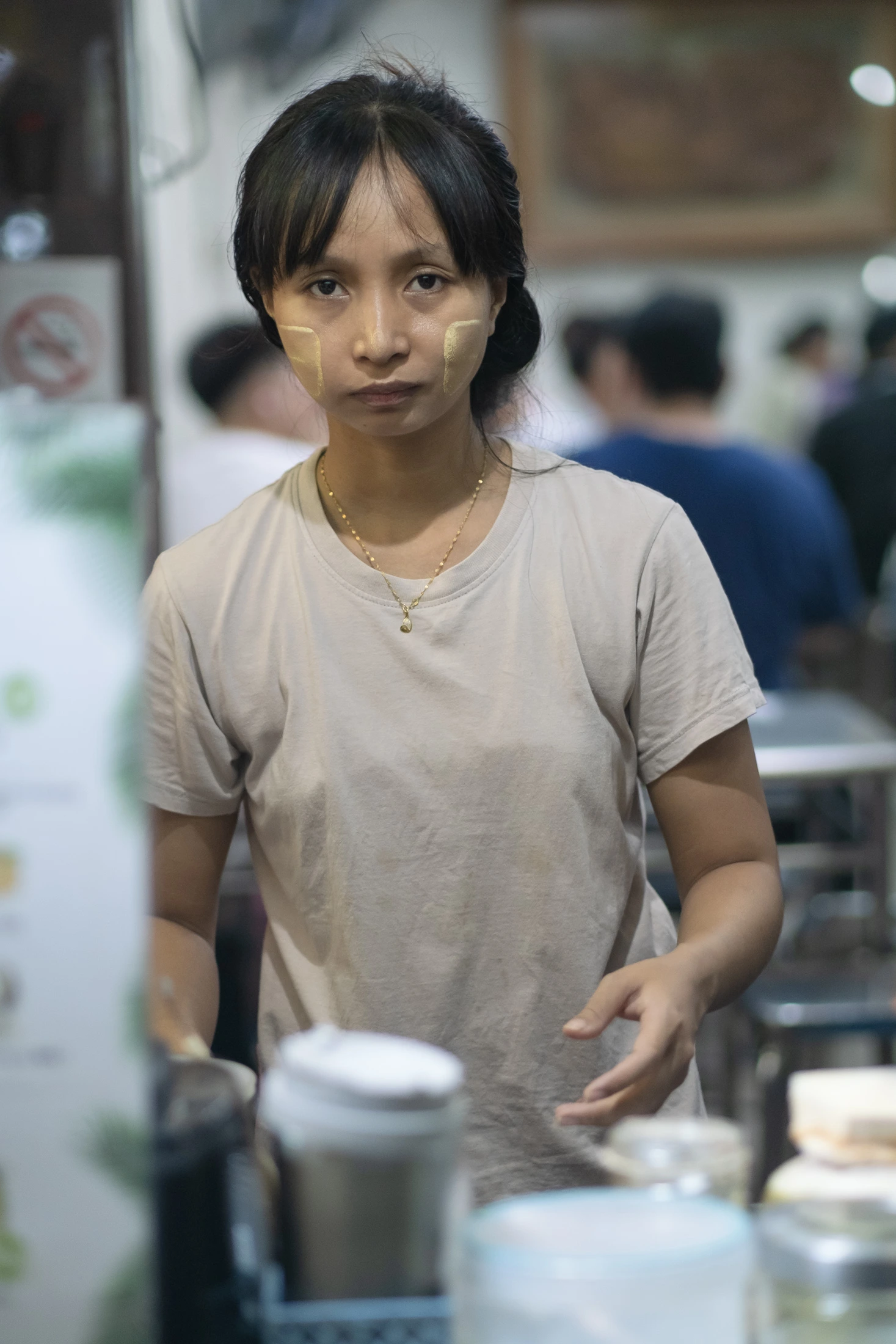Temporary barricades run several kilometres along the strip to stop the crowd from spilling onto the street. It also means a narrow flow of people can jostle past of the crowded restaurants.